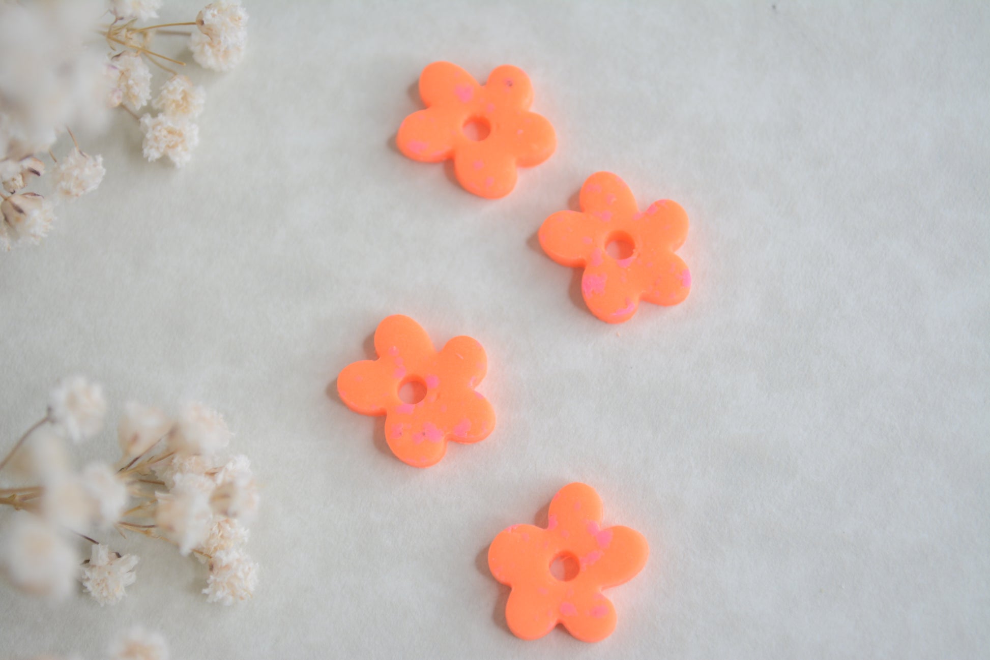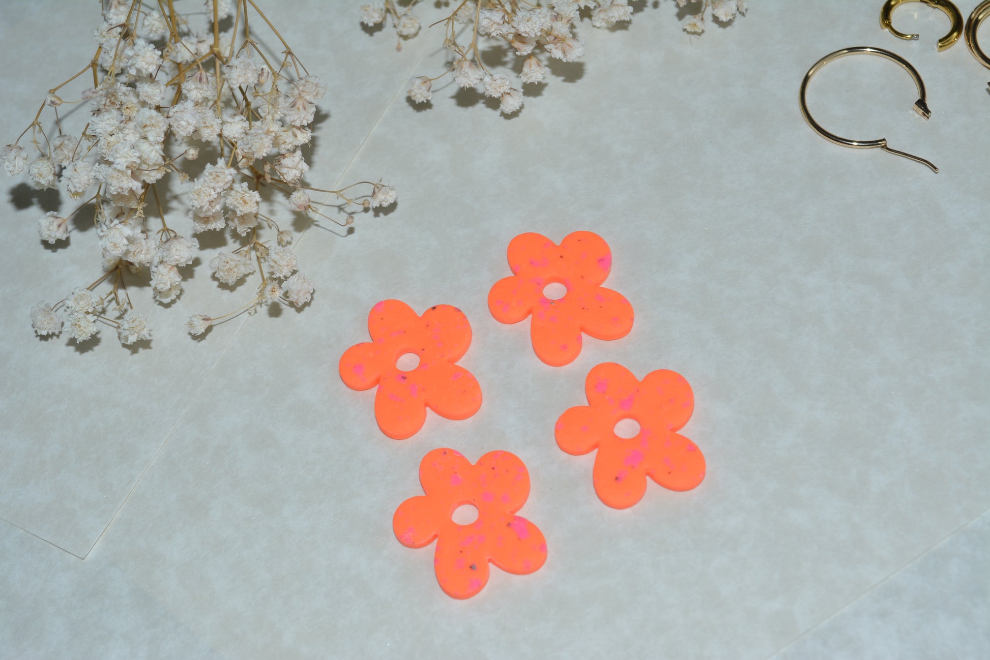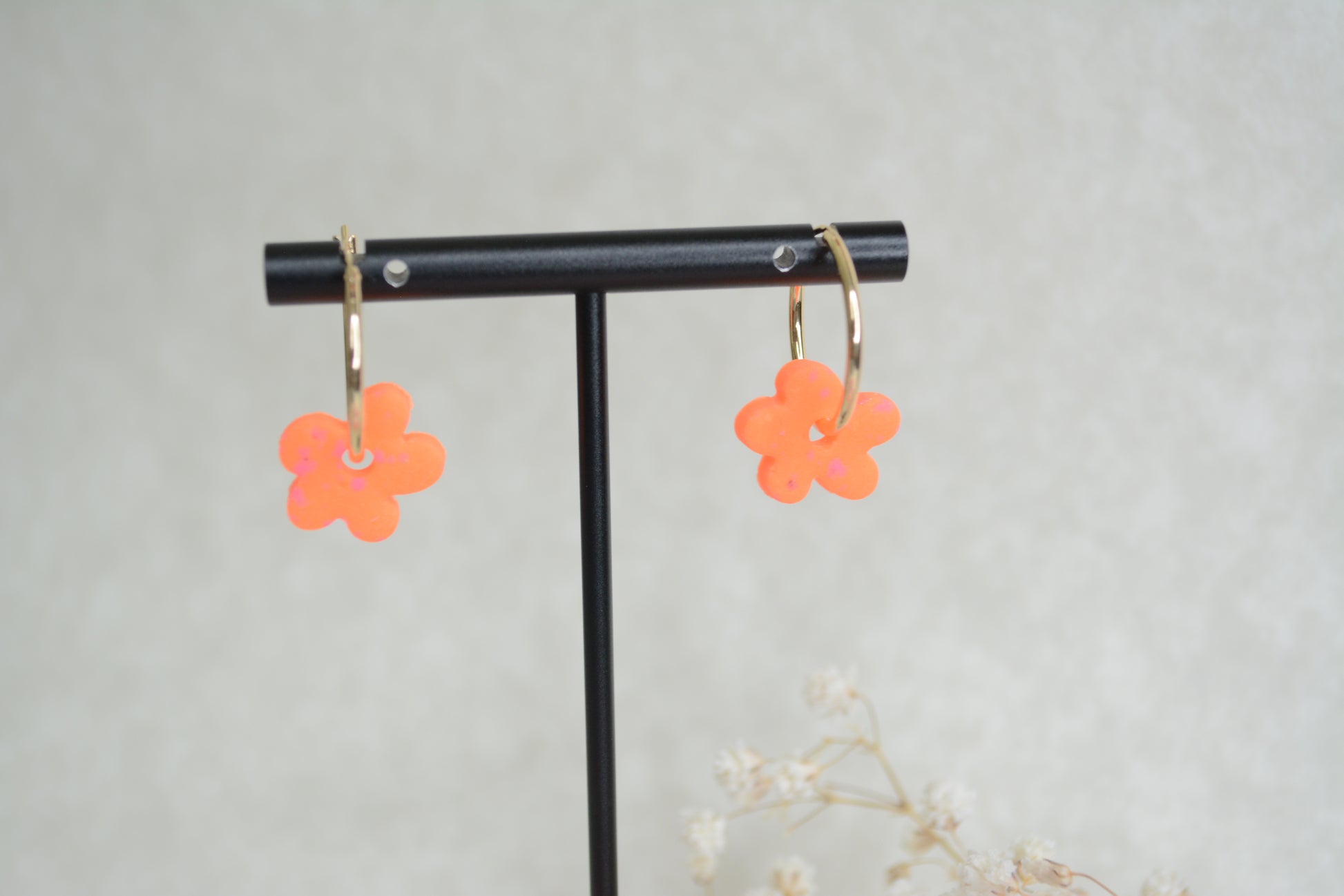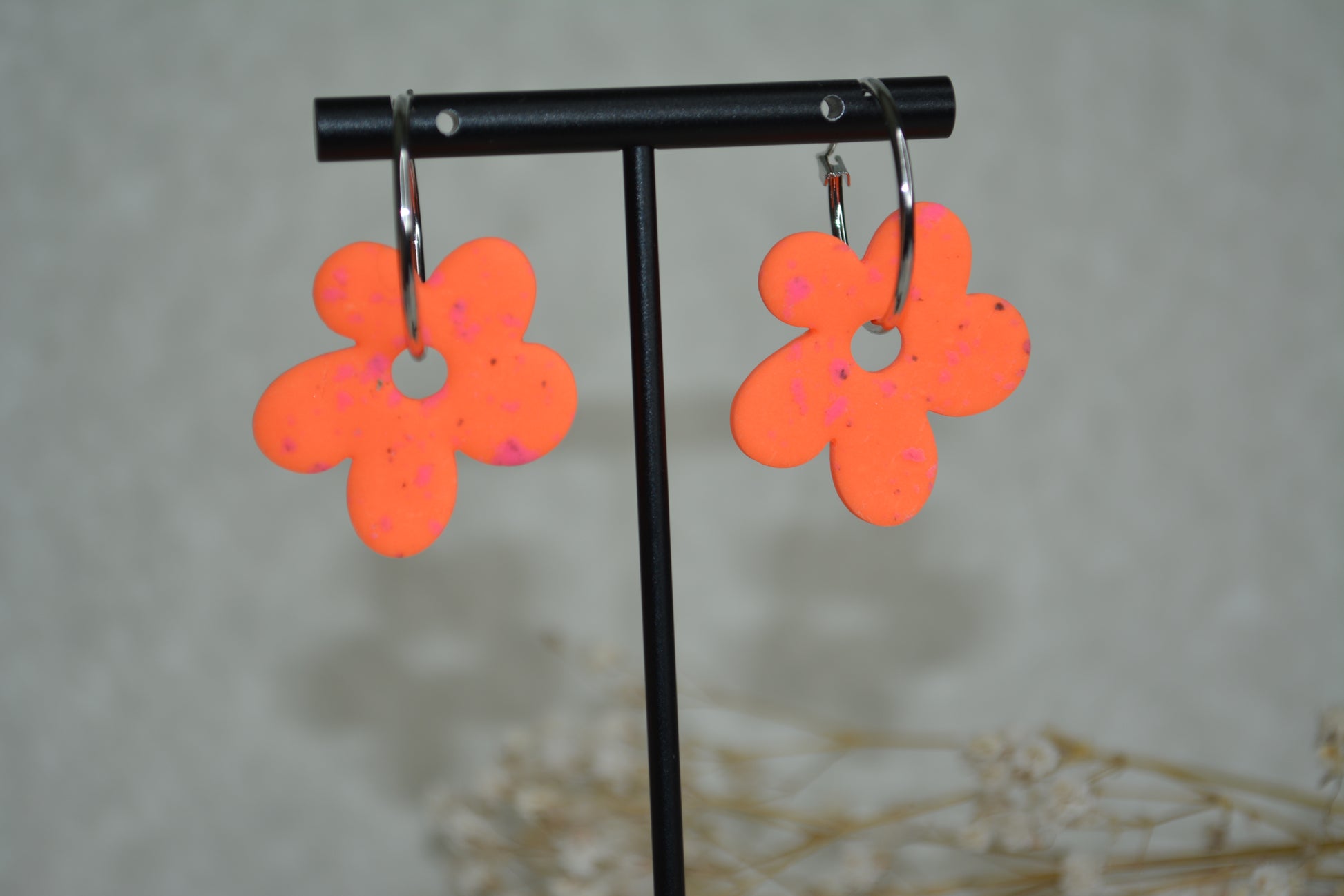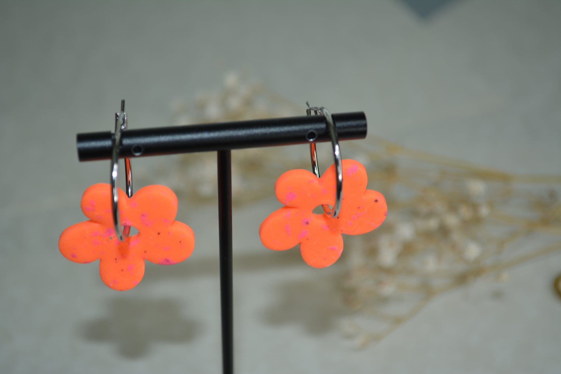 - Handmade earrings made with polymer clay, perfect shape of a flower. The magic of this earrings is that you can use just de Gold or silver hoop or use another type design with the hoops.