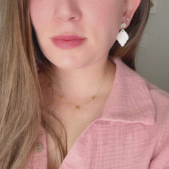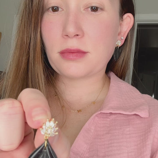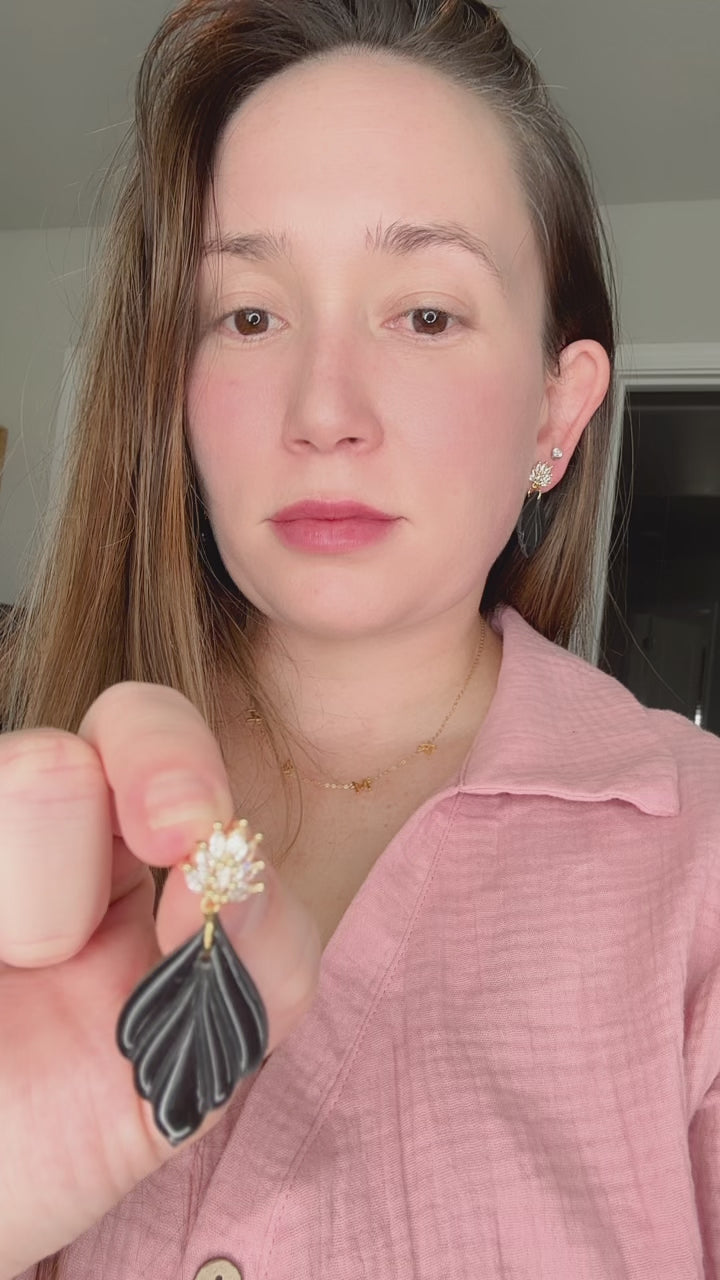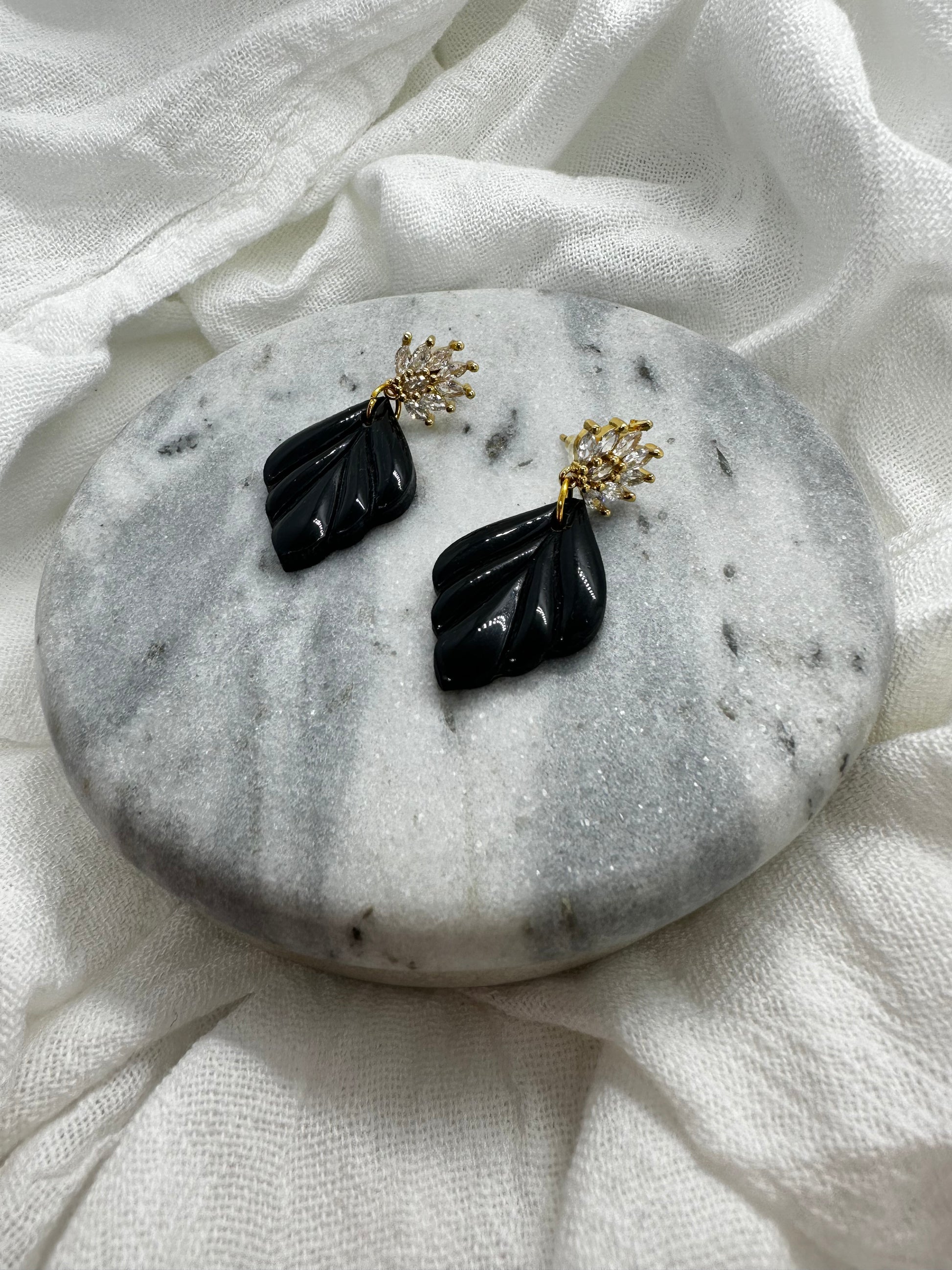These Onyx earrings are a stunning addition to any look. Crafted by hand with lightweight yet durable polymer clay, they offer a sophisticated elegance perfect for any special occasion or everyday chic.